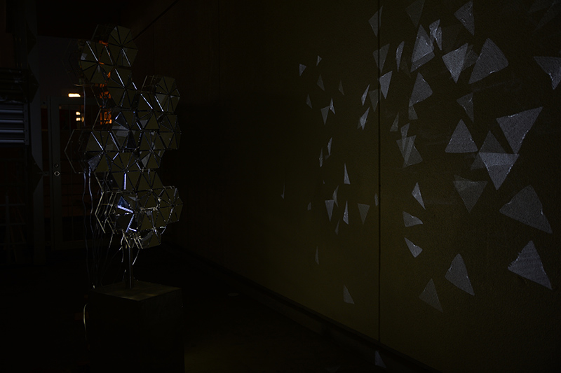 人は陰影の変化から直感的に多くの情報を読み取ることができる。しかし、工業製品はこうした情報伝達手段とは異なる方法で我々に情報を伝えている。これからの生活の中で情報がさらに複雑化されていくのは明らかであり、それをどのように直感的にヒトに理解させ、適切な操作をさせるかが重要となる。本研究では自然現象を、幾何学的形態を用いて抽象的に表現し、実態のある物質の陰影の変化で、ヒトとモノとのコミュニケーションを行うことを目的とする。